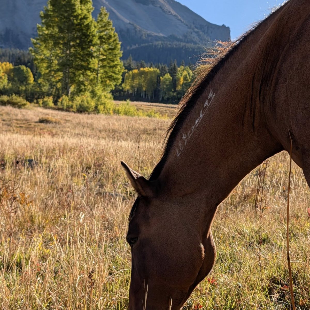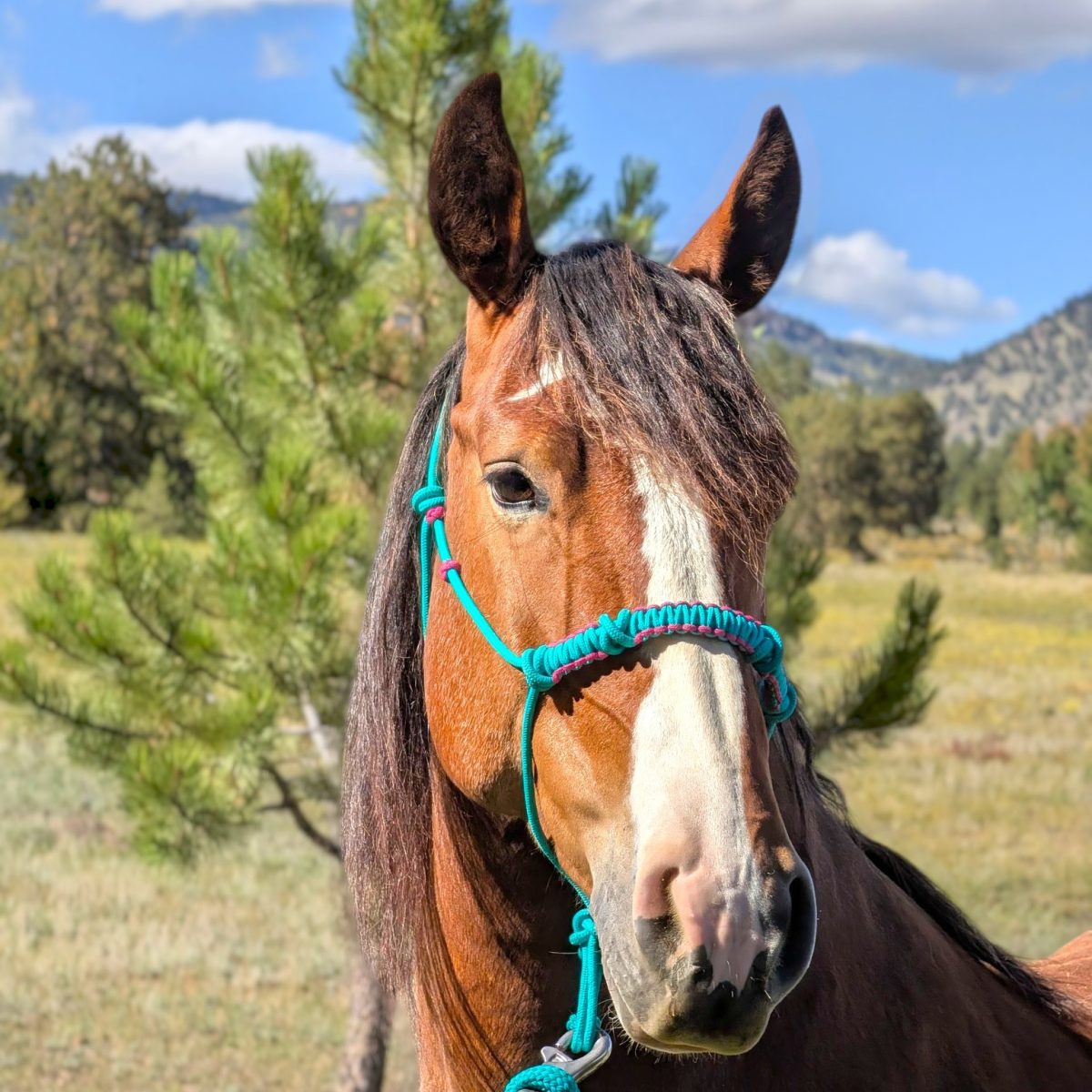 Buddy just finished 30 days of kindergarten and elementary school with us. His adopter won him in the IA and then sent him here, with the goal of getting him to where a domestic baby his age would be by the time he went home, for a seamless transition into his new herd and every day life. As he gets older, Buddy will be exploring the Rocky Mountains with his human. We’re super excited for them.